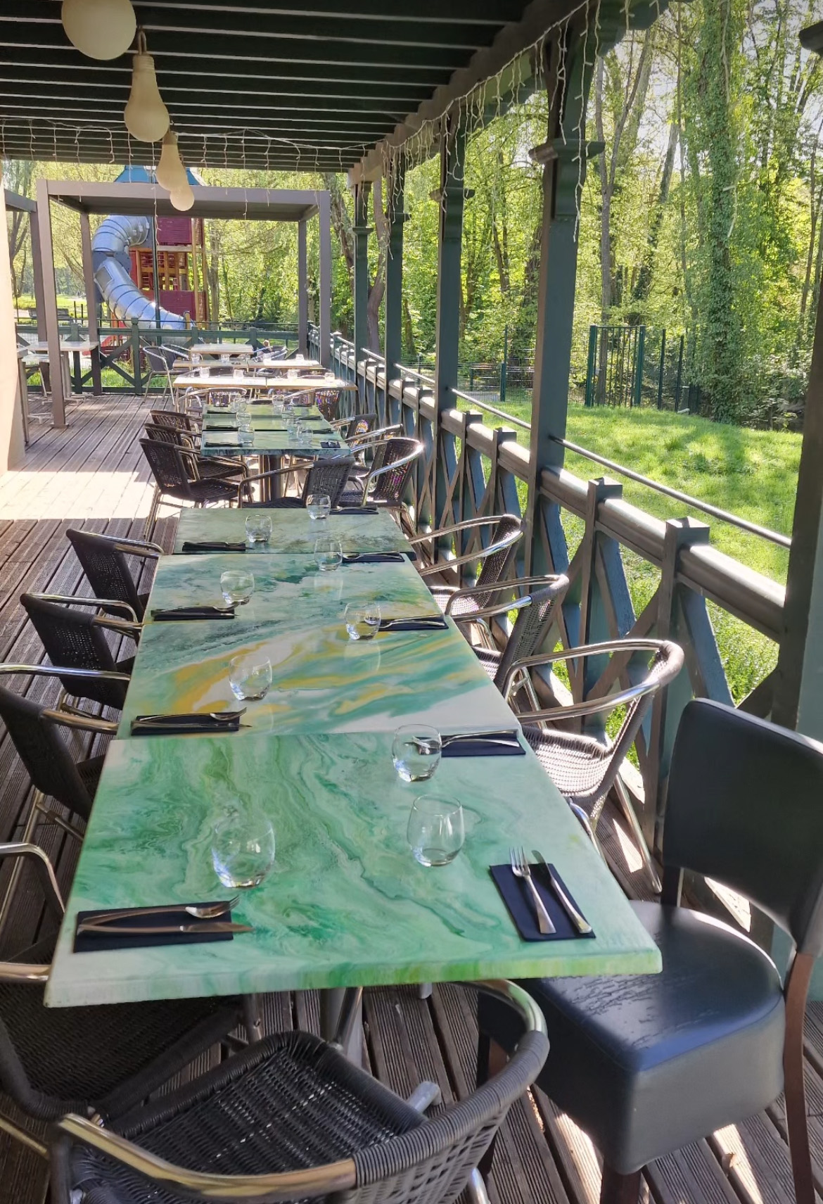 Une bâtisse historique à l'orée de l'Yerres, une terrasse ombragée, une cuisine d'été pensée au rythme du marché.